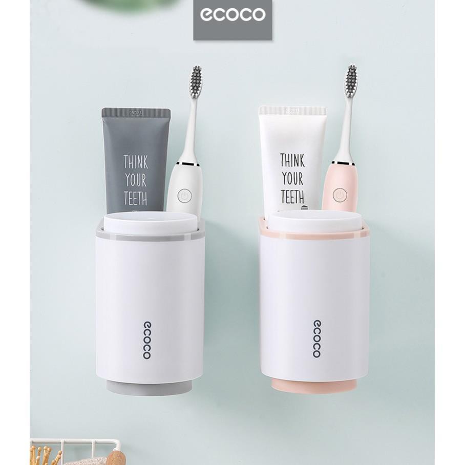 Kệ Để Bàn Chải Đánh Răng Ecoco Kèm 2 Cốc , Kệ Nhà Tắm Thông Minh Dính Tường Tiện Lợi