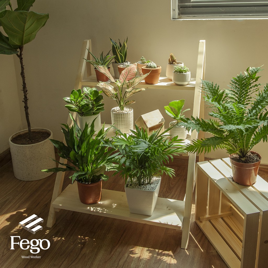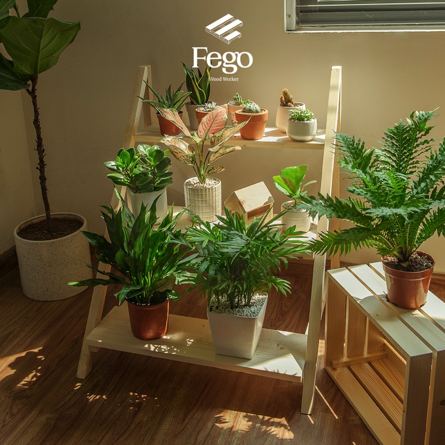 Nhà cửa & Đời sống > Nội thất > Kệ & Giá || [Mã LIFEMALL253 giảm 100K đơn 250K] Kệ để cây cảnh 3 tầng dạng bậc thang bằng gỗ thông FEGO để trong nhà, ngoài trờiCòn hàng