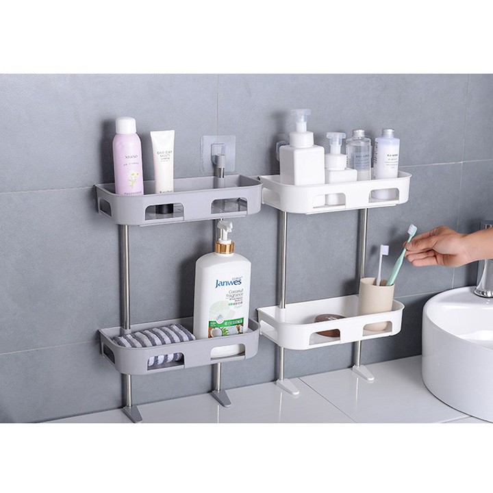 Kệ để đồ 2 tầng nhà tắm khung inox kèm tấm dán chịu lực không cần khoan tường TT- HOME