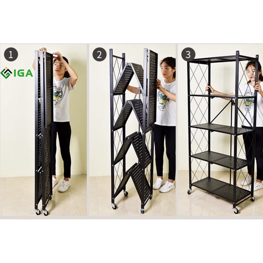 Kệ Để Đồ IGA Gấp Gọn Đa Năng Có Bánh Xe Di Chuyển Dễ Dàng Chính Hãng---------------