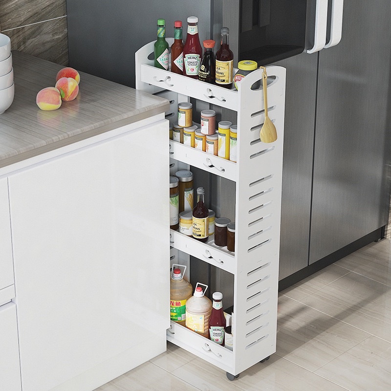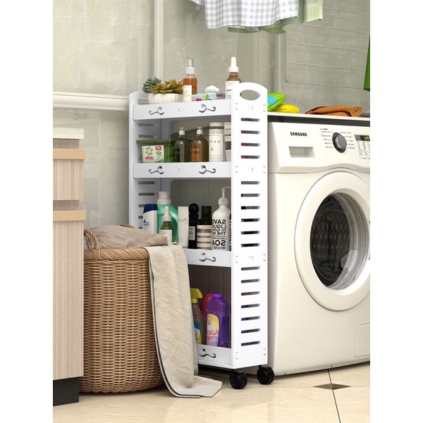 Kệ để đồ kệ trang trí 3 tầng bằng gỗ có bánh xe