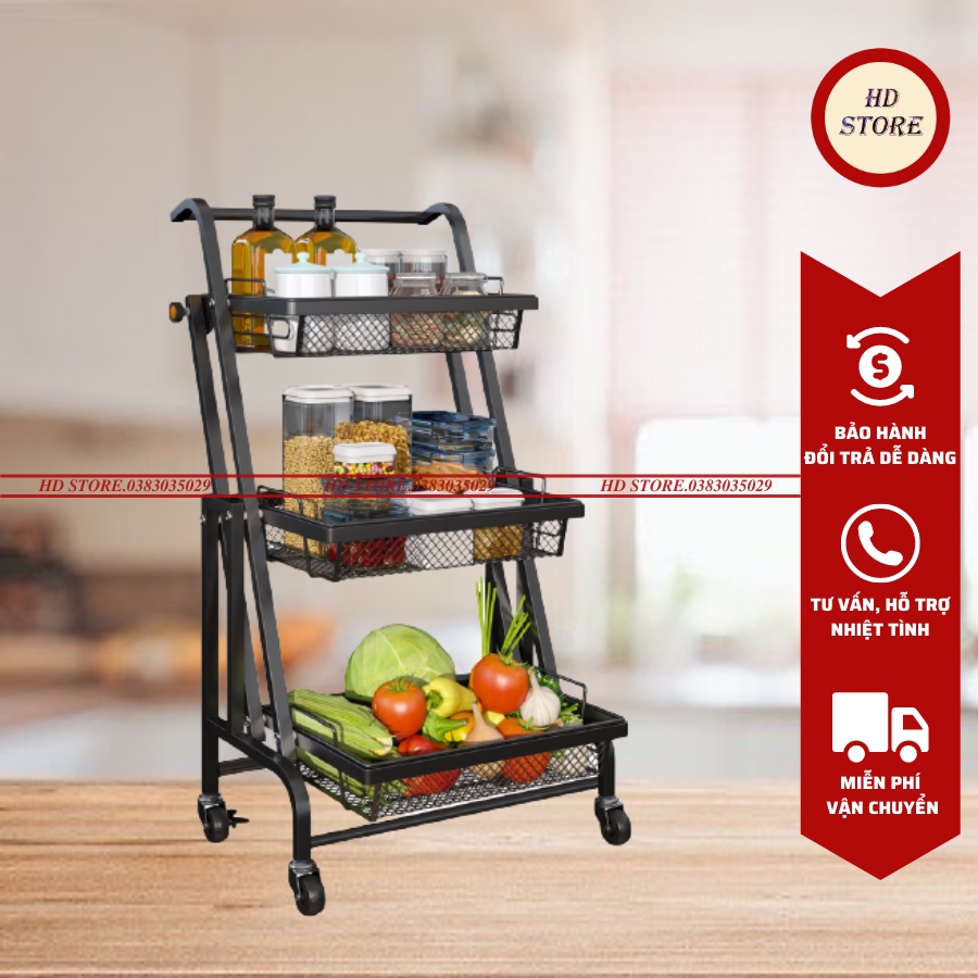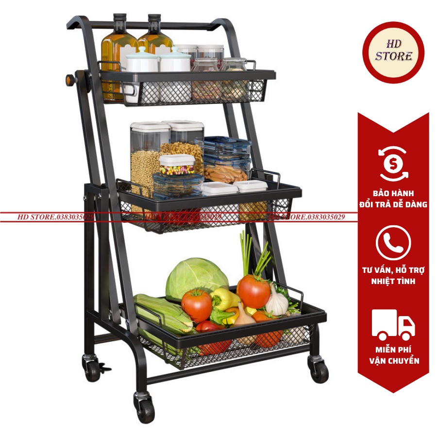 Giới thiệu 🆓 Kệ Để Đồ Nhà Bếp Gấp Gọn - Xe Đẩy Đựng Đồ Đa Năng Thép Carbon Sơn Tĩnh Điện Có Bánh Xe Di Chuyển