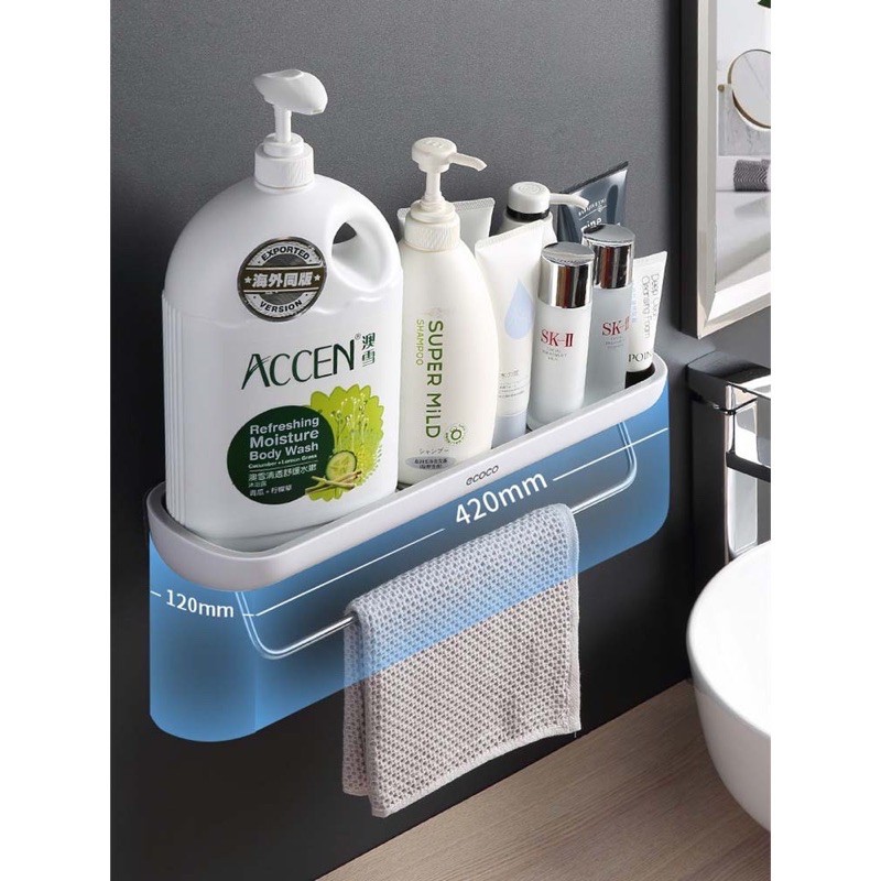 Giới thiệu Kệ để đồ nhà tắm nhà bếp có móc treo khăn siêu dính ecoco, kệ ngang ecoco kèm móc treo khăn