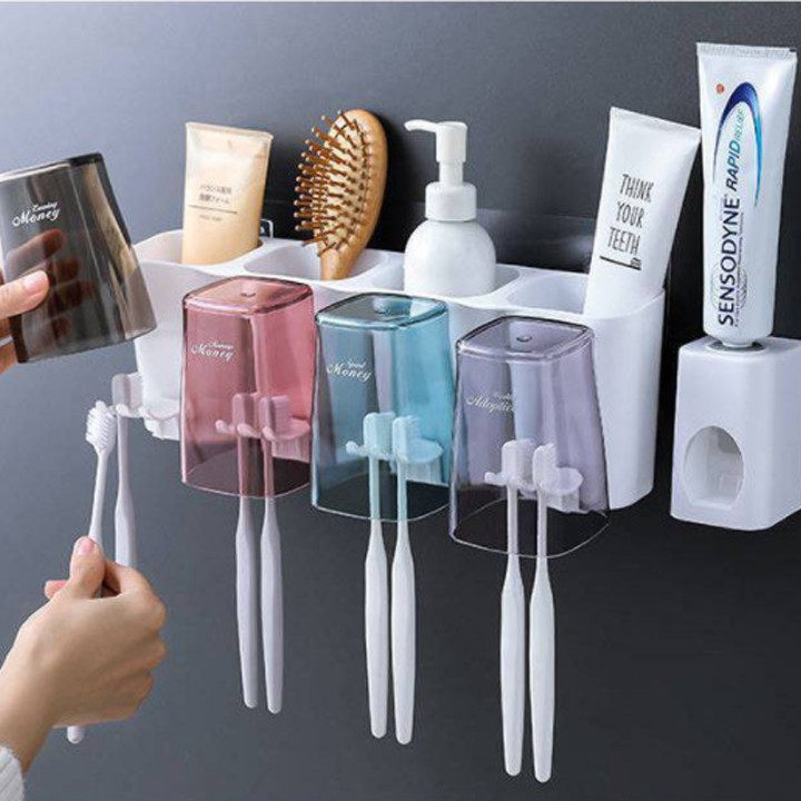 Nhà cửa & Đời sống > Đồ dùng phòng tắm > Kệ đựng bàn chải, kệ nhả kem đánh răng || Kệ Để Đồ Phòng Tắm Cao Cấp, Bộ Nhả Kem Đánh Răng Tự Động (Chuẩn Loại 04 Cốc)Còn hàng