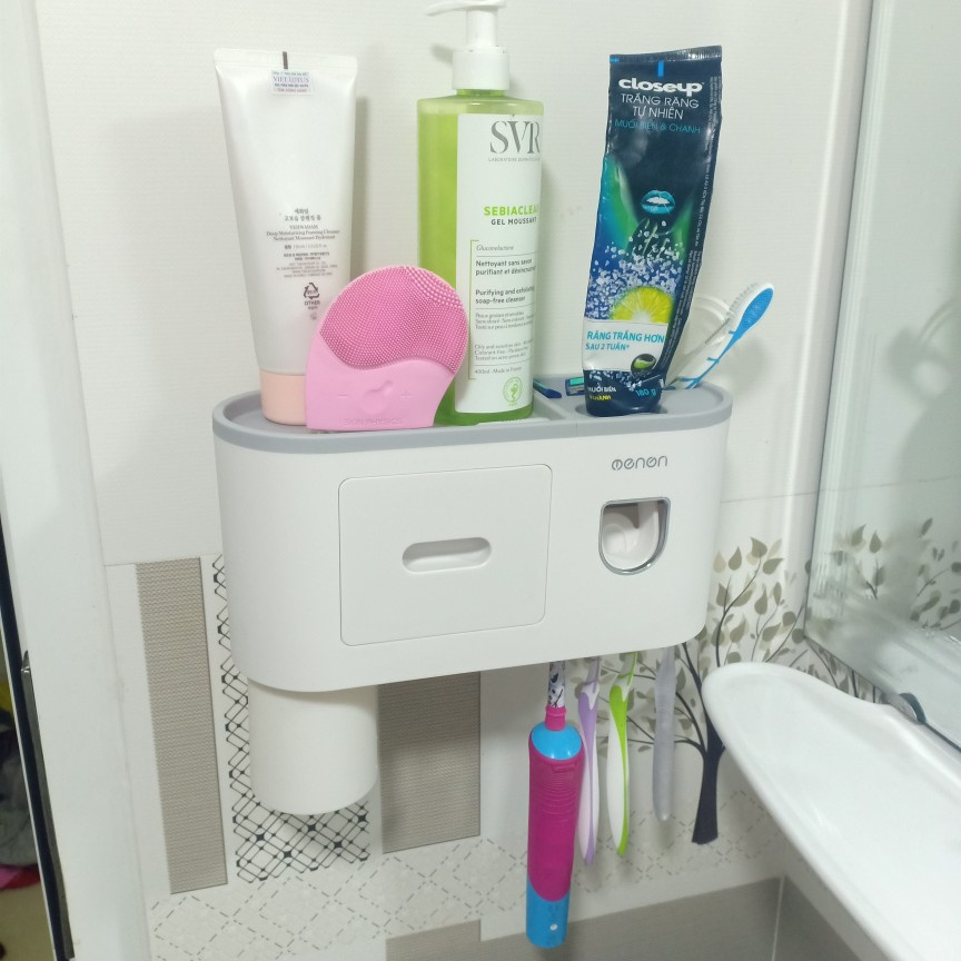 - Bộ sản phẩm bao gồm: Kệ đựng đồ đa năng - để bàn chải đánh răng - để cốc đánh răng - nhả kem đánh răng tự động - ngăn kéo đựng đồ+ chỗ để sữa tắm - sữa rửa mặt - dầu gội - đựng bông ngoái tay - điện thoại + cốc nhựa xinh xắn