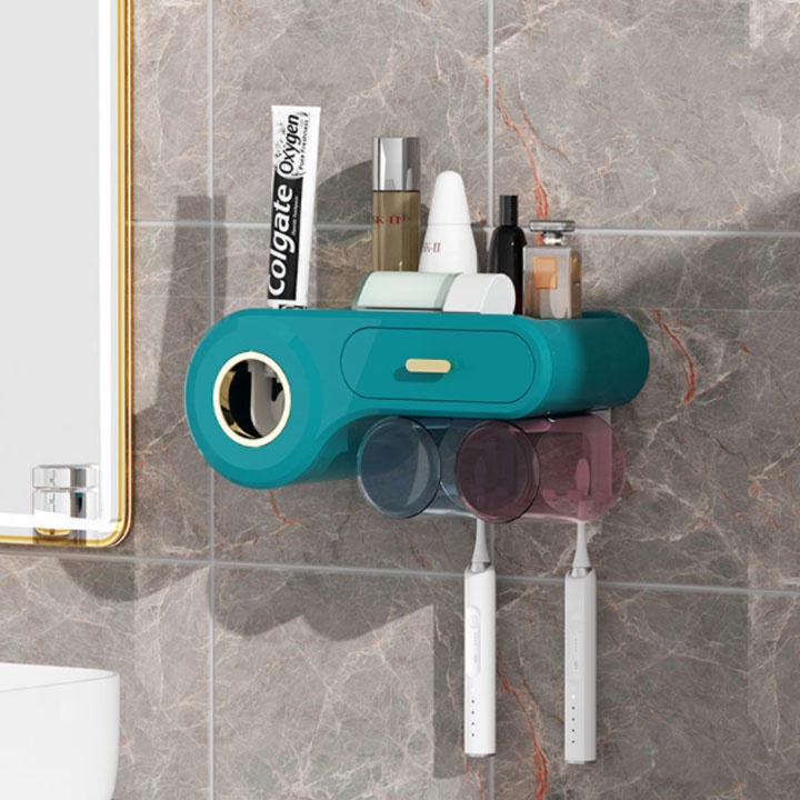 - Bộ sản phẩm bao gồm: Kệ đựng đồ đa năng - để bàn chải đánh răng - để cốc đánh răng - nhả kem đánh răng tự động - ngăn kéo đựng đồ+ chỗ để sữa tắm - sữa rửa mặt - dầu gội - đựng bông ngoái tay - điện thoại + cốc nhựa xinh xắn