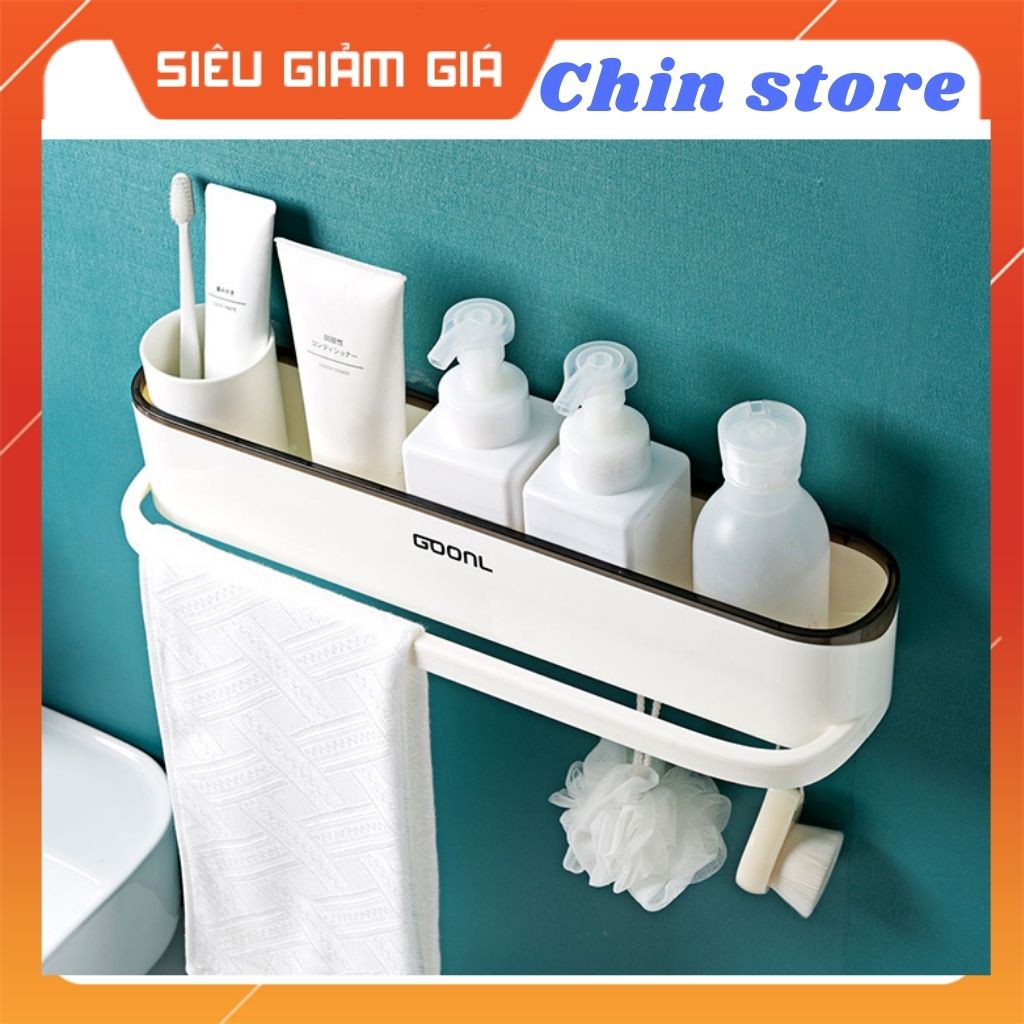 Kệ để đồ phòng tắm gắn tường siêu chắc GOONL cao cấp có móc treo và thanh treo khăn 8*44.5*12 cm