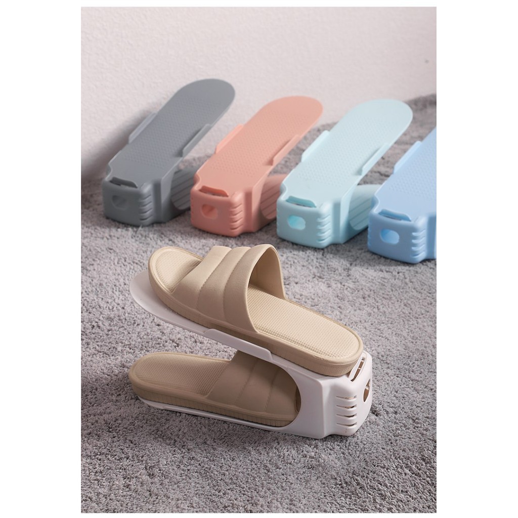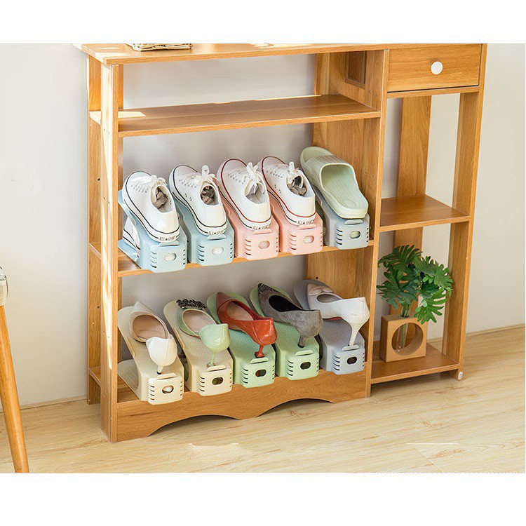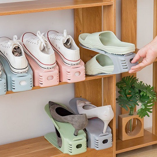 *Điểm nổi bật:Thiết kế đơn giản mà thông minh, với 2 tầng để giày, giúp bạn xếp giầy dép gọn gàng vô kệ. Ko còn phải lo giầy dép lộn xộn nữa. Giầy để trên kệ này sẽ luôn an toàn, ko bị móp méo mất dáng. Bề mặt kệ thiết kế với nhiều răng cưa, giúp giày bám chắc, và dễ lấy giày ra khỏi tủ chỉ với 1 ngón tay.