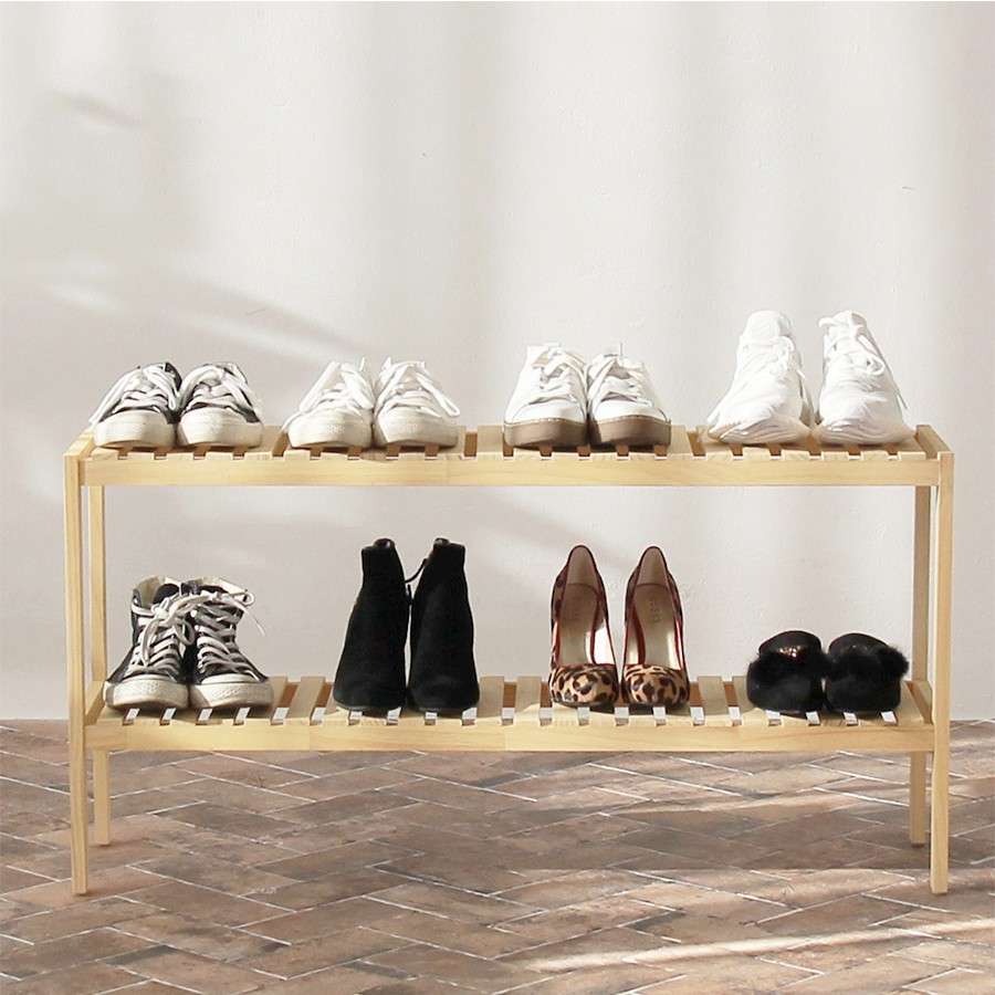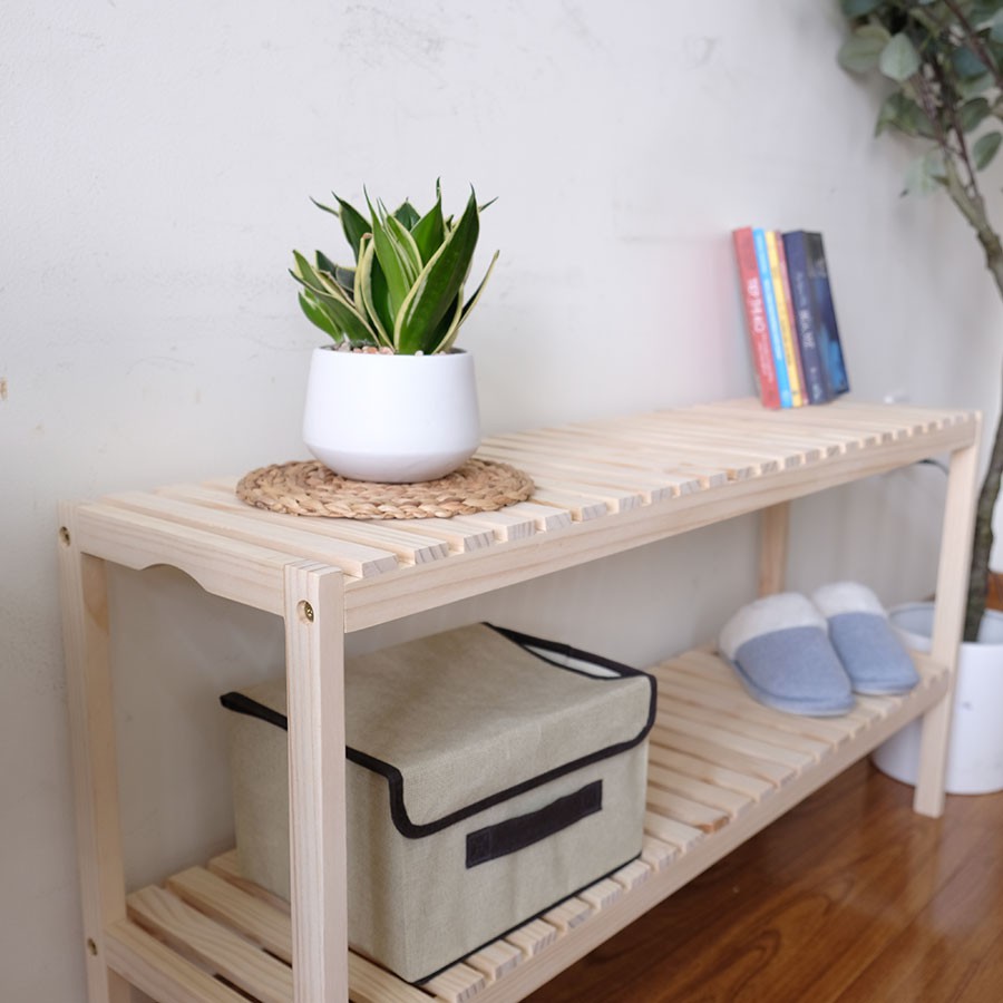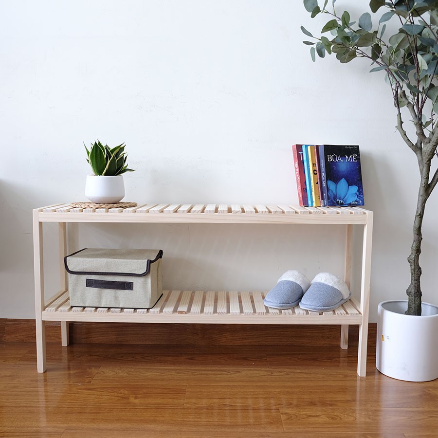 Kệ Để Giày FREESHIP Tủ Đầu Giường Gỗ Thông Tự Nhiên - Giá Giày Dép 2 Tầng Dài 100cm Phong Cách Hàn Quốc
