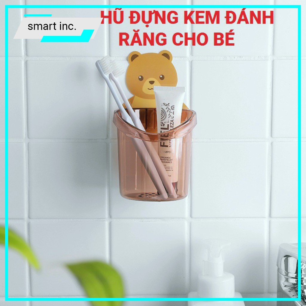 Kệ Để Hủ Ly Nhựa Đựng Bàn Chải Kem Đánh Răng Cho Bé Gắn Tường Giá Treo Cốc Khay Dán Tường Hình Thú Gấu Cute