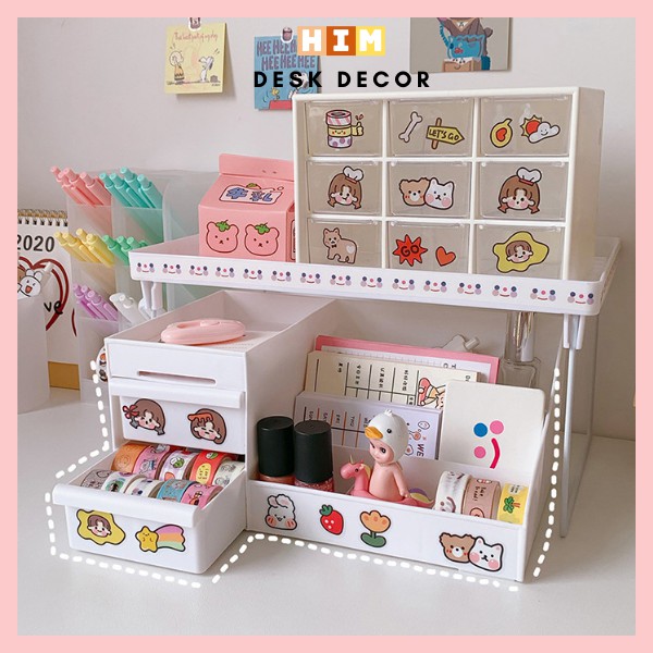 Kệ Decor Trang Trí Bàn Học Có Ngăn Kéo, Kệ Đựng Mỹ Phẩm Đa Năng Tiện Dụng 2 Tầng Nhiều Ngăn