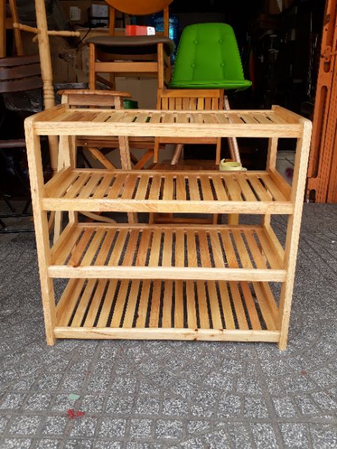 Kệ dép 4 tầng ngang 60cm được gia công bằng gỗ cao su, xử lý chống mối mọt. Những nan gỗ nhỏ ghép lại nhìn thanh mảnh rất đẹp, không bị thô.- Kích thước kệ :