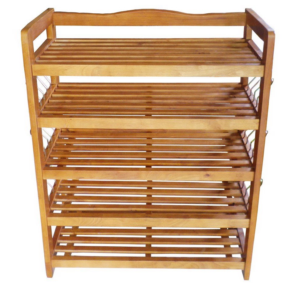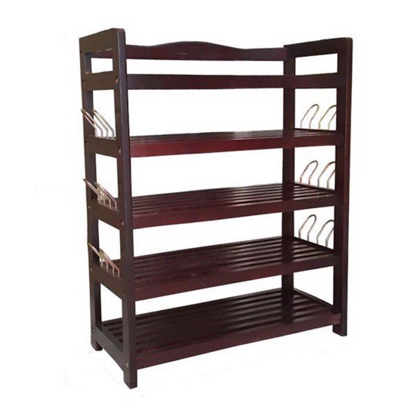 Kệ Dép 5 Tầng Móc Sắt-Kệ Gỗ Cao Su