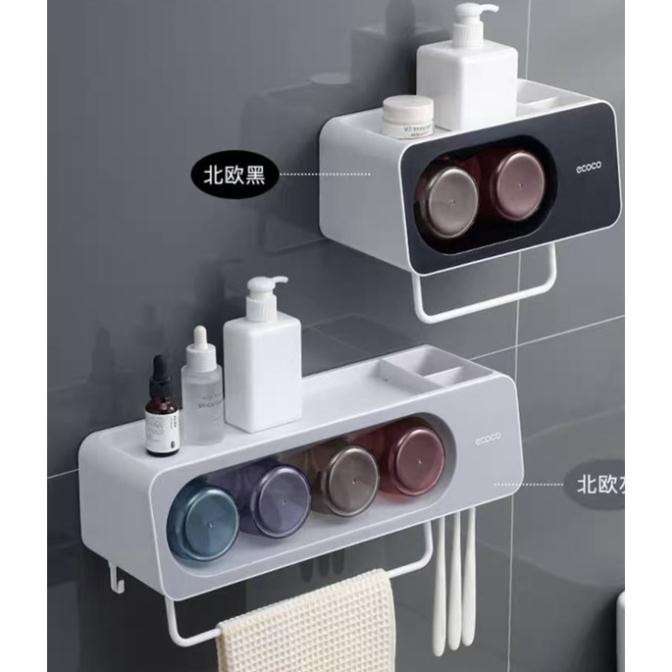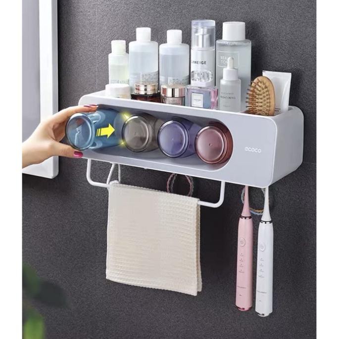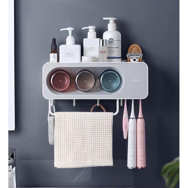 Nhà cửa & Đời sống > Đồ dùng phòng tắm > Kệ đựng bàn chải, kệ nhả kem đánh răng || kệ đồ phòng tắm, kệ cắm chải kèm cốc dính cường lực ecoco mẫu mới nhấtCòn hàng