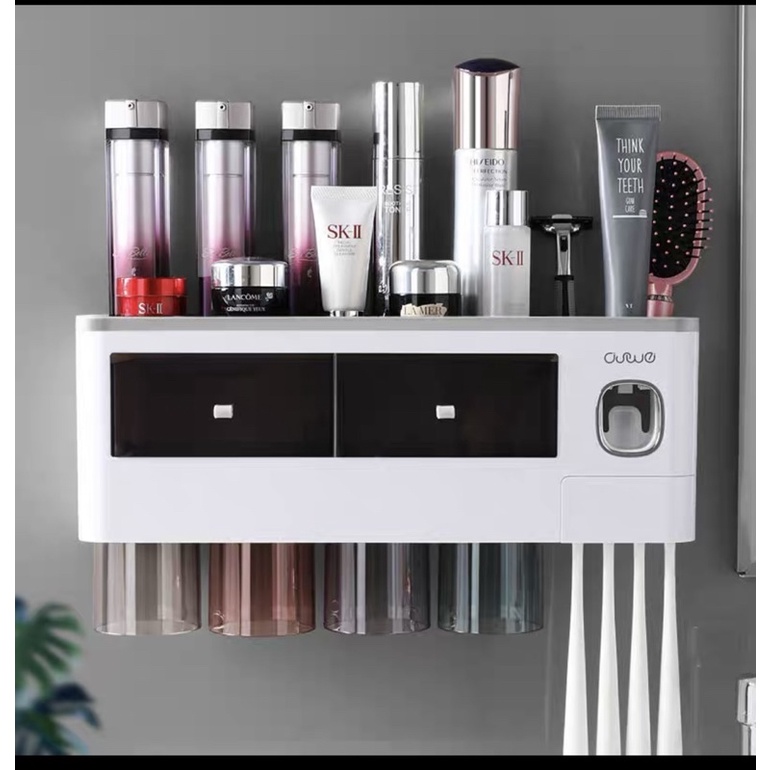 kệ nhà tắm tích hợp chức năng lấy kem tự động + Cốc hút từ tính ( loại 2/3/4 cốc) + miếng dán tường
