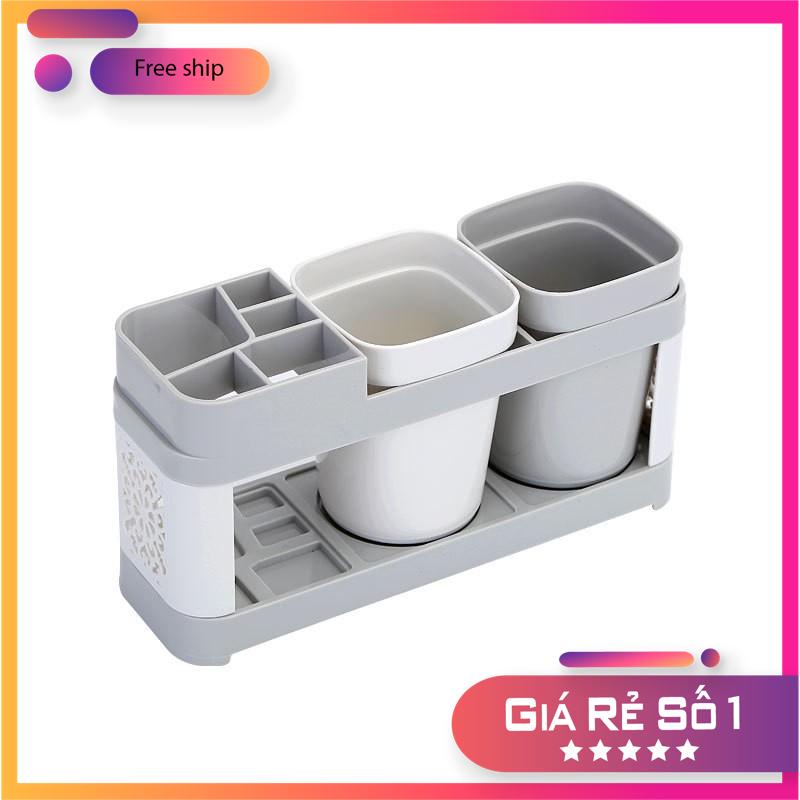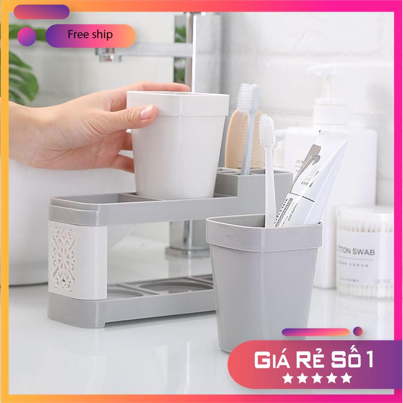 Kệ đựng bàn chải đánh răng kệ đựng đồ nhà vệ sinh kèm 2 ly để bàn chải đánh răng chất liệu nhựa