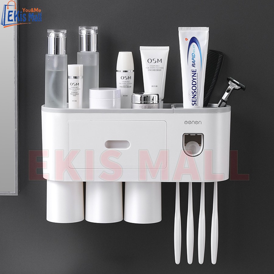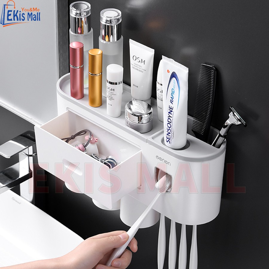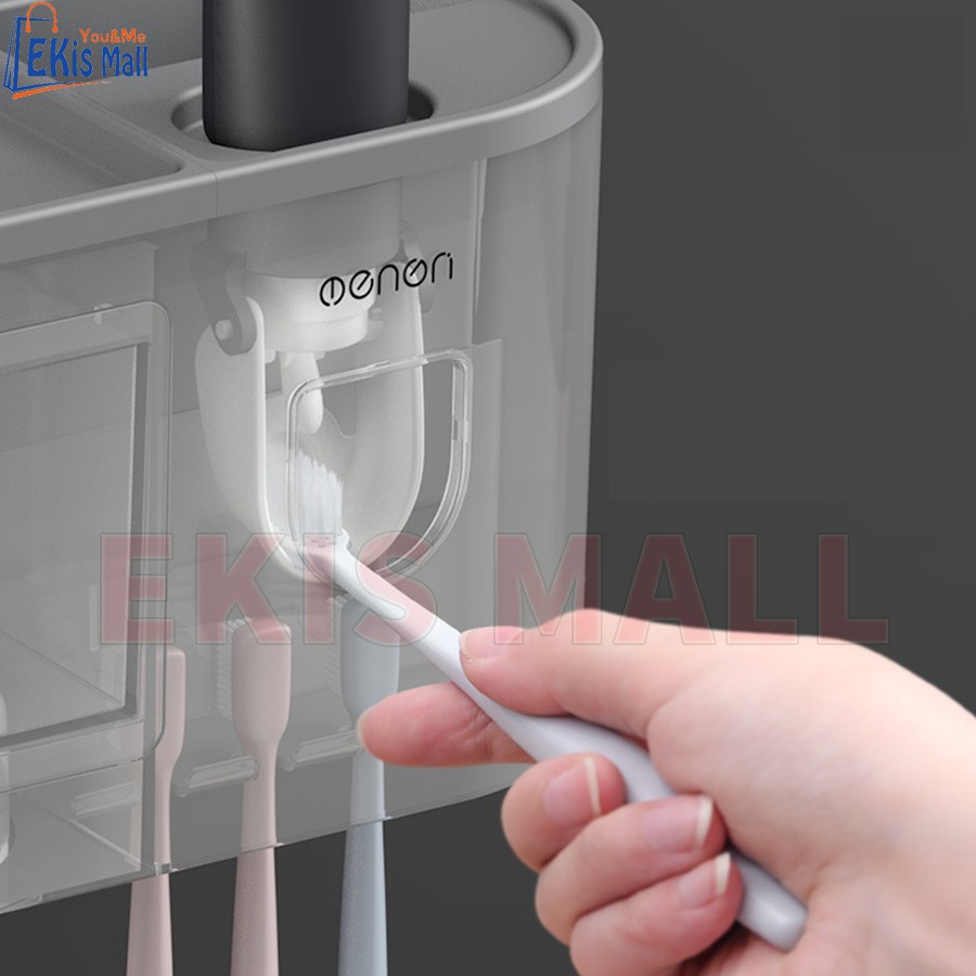 Kệ đựng bàn chải đánh răng kèm hộp nhả kem cao cấp Giá treo bàn chải đánh răng dán tường chịu lực