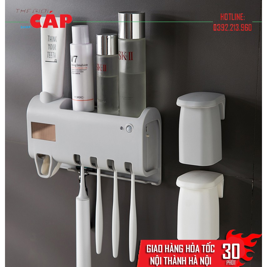 Nhà cửa & Đời sống > Đồ dùng phòng tắm > Kệ đựng bàn chải, kệ nhả kem đánh răng || Kệ Đựng Bàn Chải Thông Minh Tự Động Lấy Kem Đánh Răng Kèm 2 Cốc Nam Châm Cao Cấp (Loại Có UV Diệt Khuẩn)Còn hàng