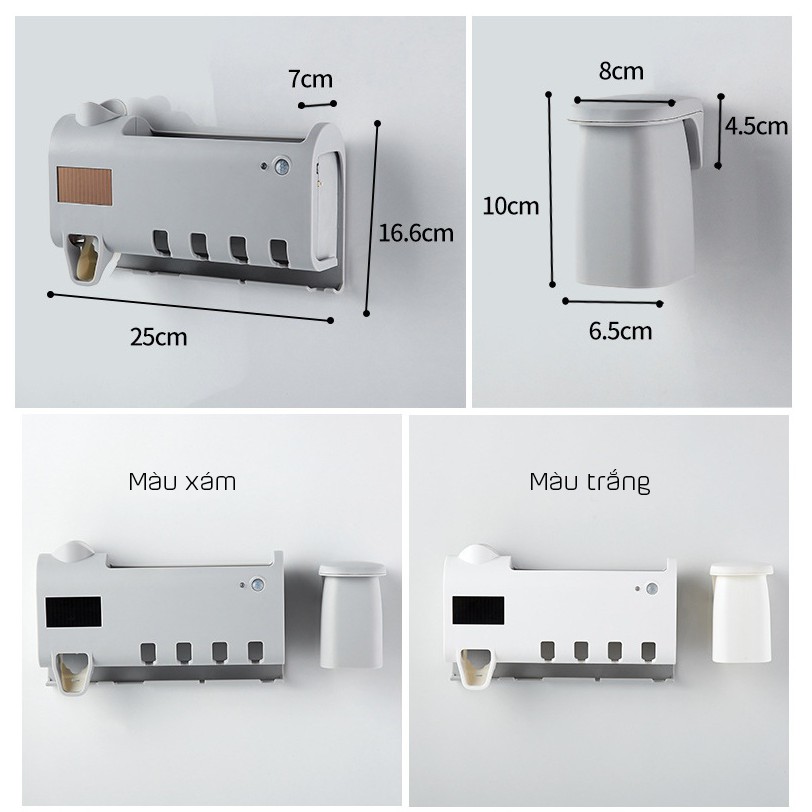 Giới thiệu Kệ Đựng Bàn Chải Thông Minh Tự Động Lấy Kem Đánh Răng Kèm 2 Cốc Nam Châm Cao Cấp (Loại Có UV Diệt Khuẩn)