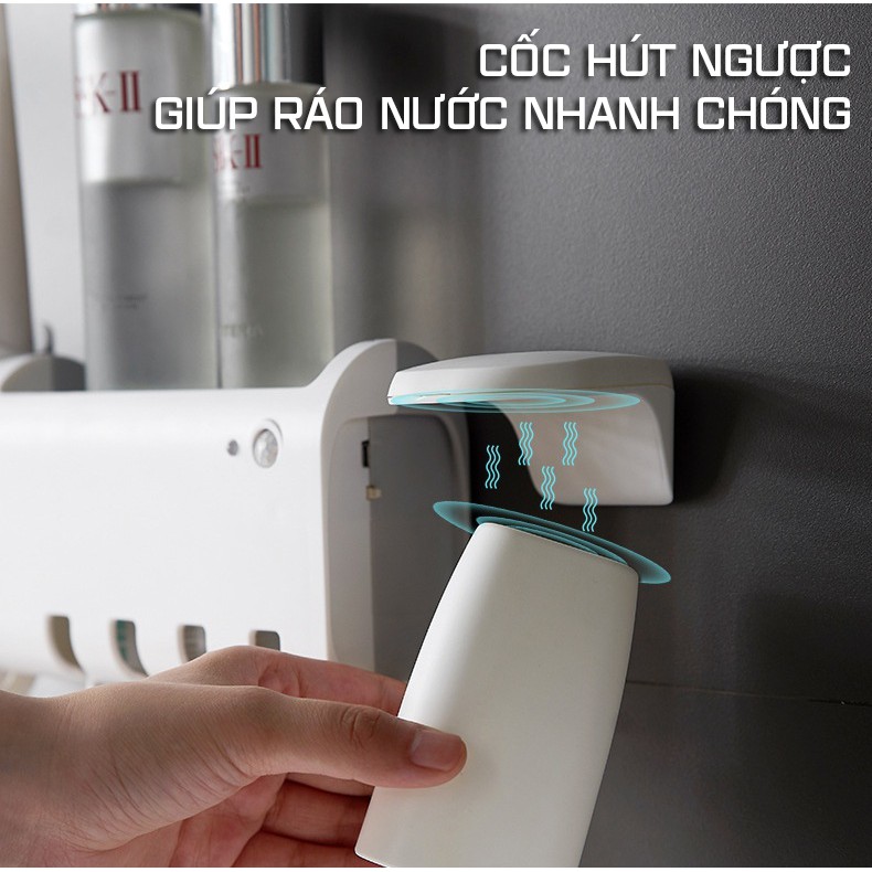 Kệ Đựng Bàn Chải Thông Minh Tự Động Lấy Kem Đánh Răng Kèm 2 Cốc Nam Châm Cao Cấp (Loại Có UV Diệt Khuẩn)