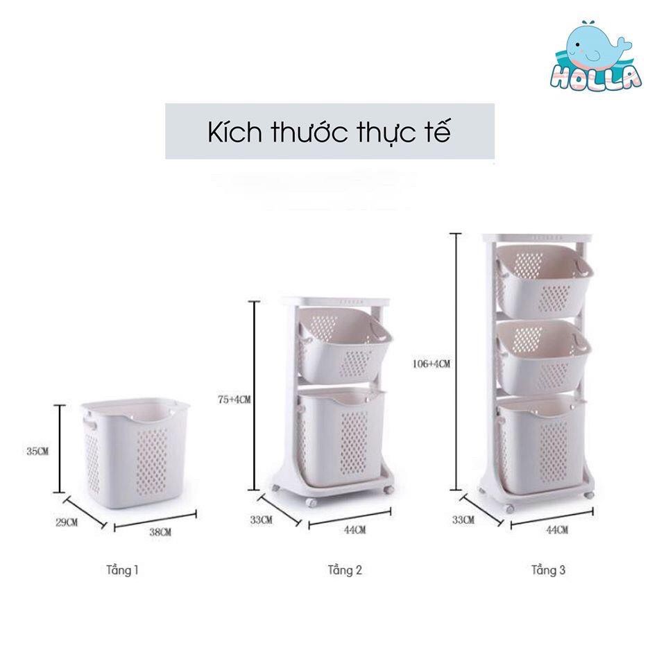 Kệ đựng đồ 3 tầng đa năng, Rổ đựng quần áo 3 tầng platic có bánh xe nhựa Việt Nhật