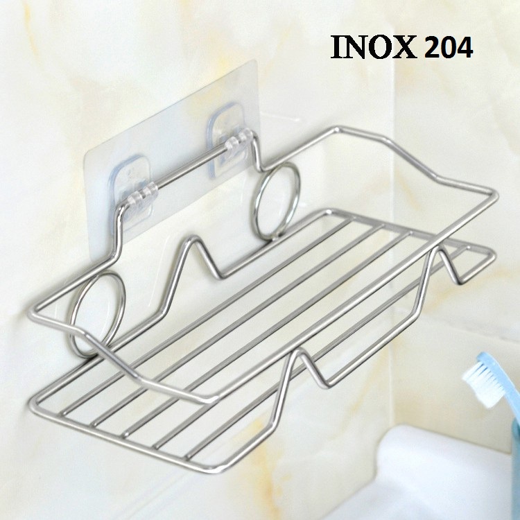 - Bộ sản phẩm gồm: 1 kệ inox + miếng dán tường