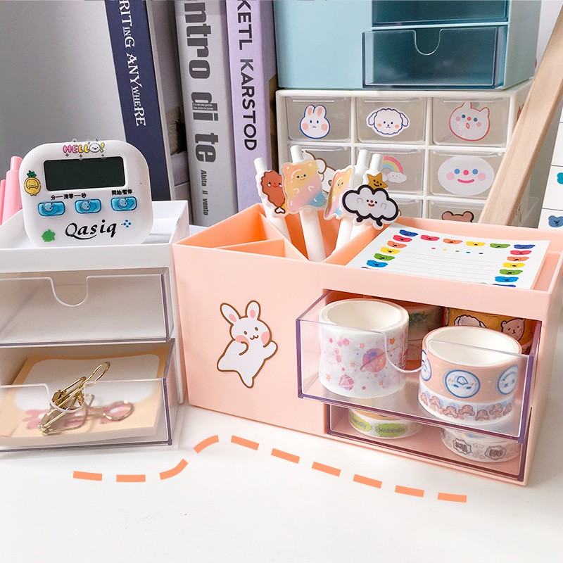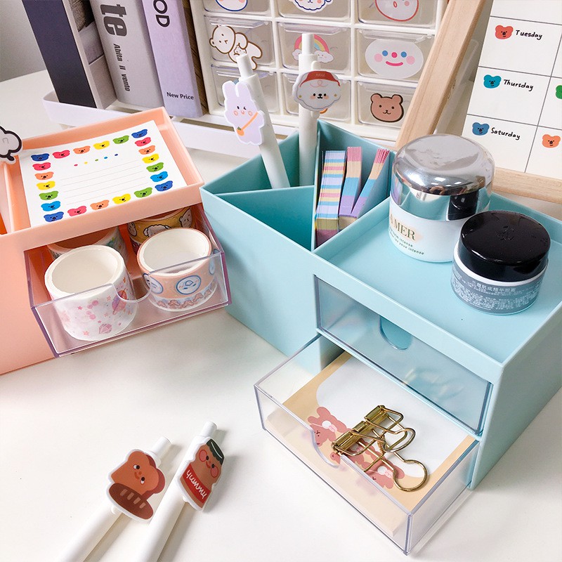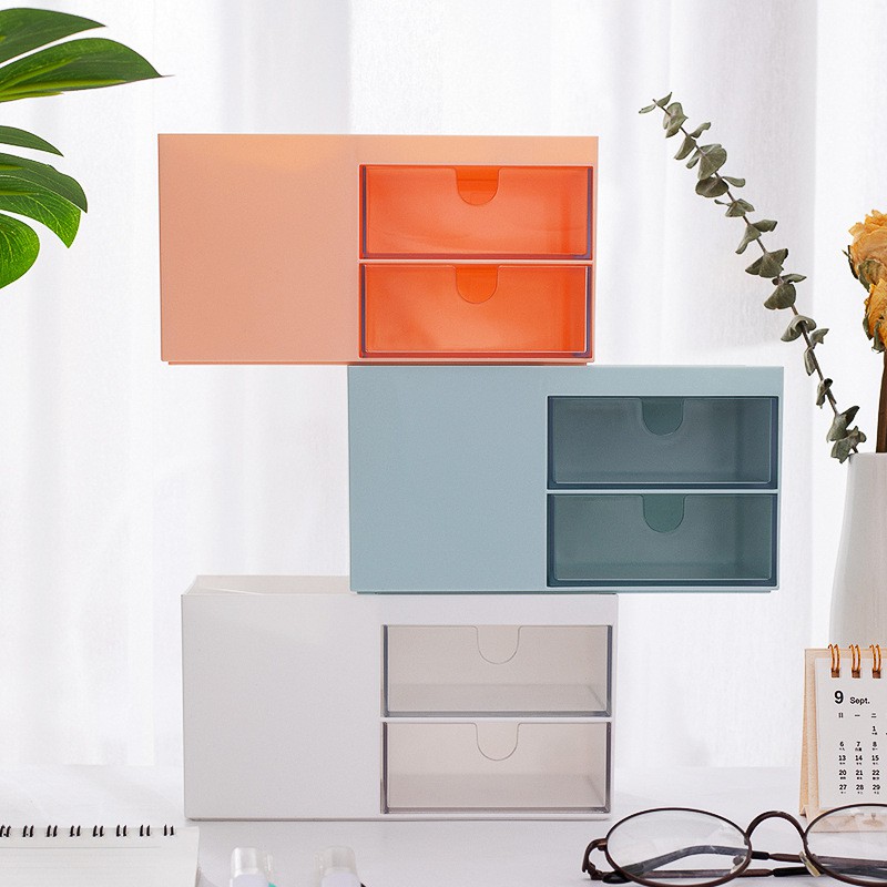Kệ đựng đồ văn phòng phẩm 2 ngăn kéo trong suốt phong cách Hàn Quốc C-22