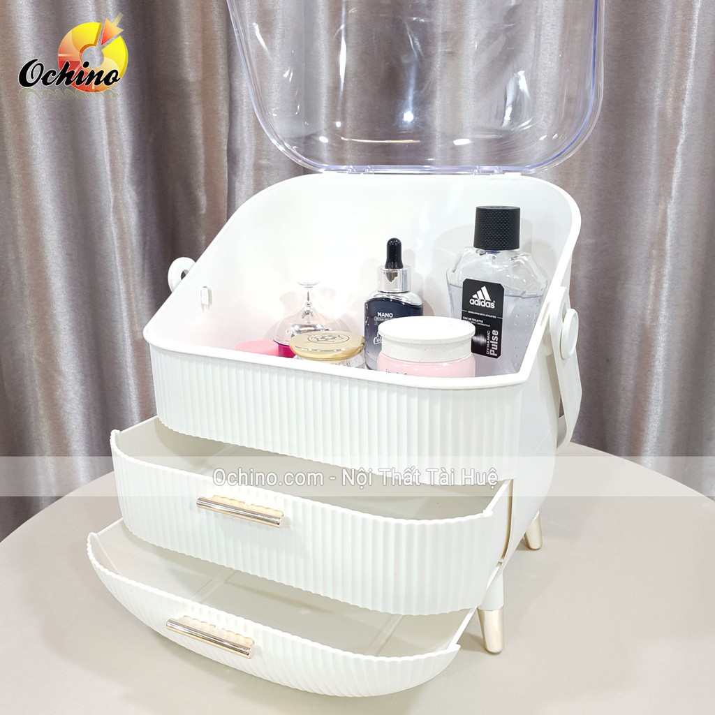 Kệ đựng Mỹ phẩm style Bắc Âu có Nắp Trong suốt chống bụi Hàng Cao Cấp ( Ảnh thật và video)