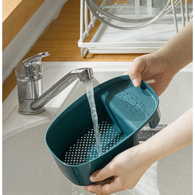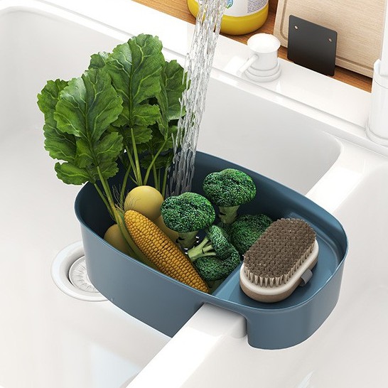 - Ngoài chức năng làm rổ đựng rau củ, rửa thịt cá, thì tác dụng chính của sp là dùng để làm khay lọc rác bồn rửa chén rổ lọc thức ăn thừa, giỏ lọc rác kèm kệ để đồ chùi xoong nồi dụng cụ nhà bếp tiện ích gọn gàng