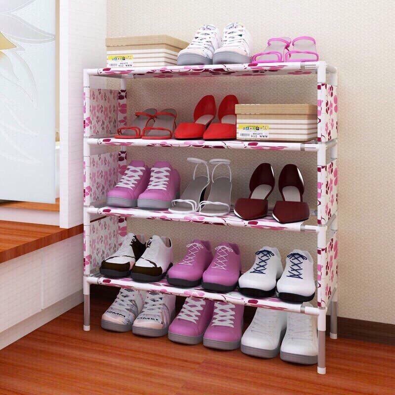 Tủ giày khung bằng inox, có 4 tầng , vải bạt chắc chắn dày dặn.Có nhiều màu sắc của vải nhưng chủ yếu shop lấy màu hồng cho đẹp nhé