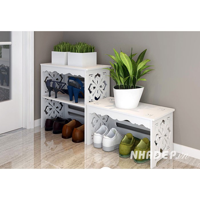 Kệ để giày đa năng với họa tiết hoa văn đẹp mắt, vừa có thể giúp bạn cất gọn gàng giày, dép, vừa có thể để đồ trang trí ở trên mặt kệ.Bạn có thể lựa chọn mẫu phù hợp với nhu cầu và không gian của ngôi nhà: