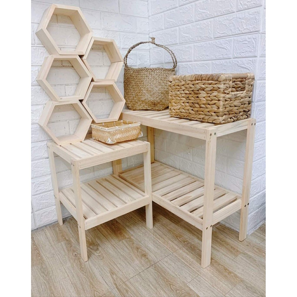 Kệ gỗ để đồ 2 tầng