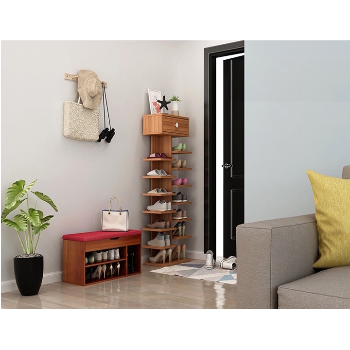 Giới thiệu Kệ gỗ để giầy dép 7 tầng có ngăn tủ phụ tiết kiệm không gian