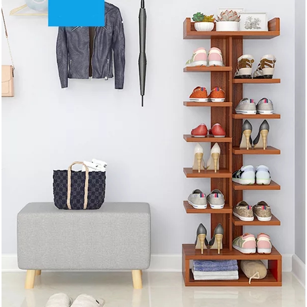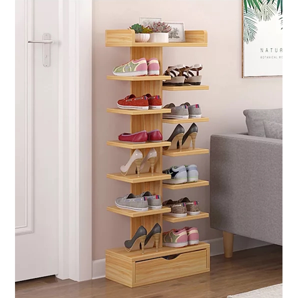 Kệ gỗ để giầy dép 7 tầng có ngăn tủ phụ tiết kiệm không gian