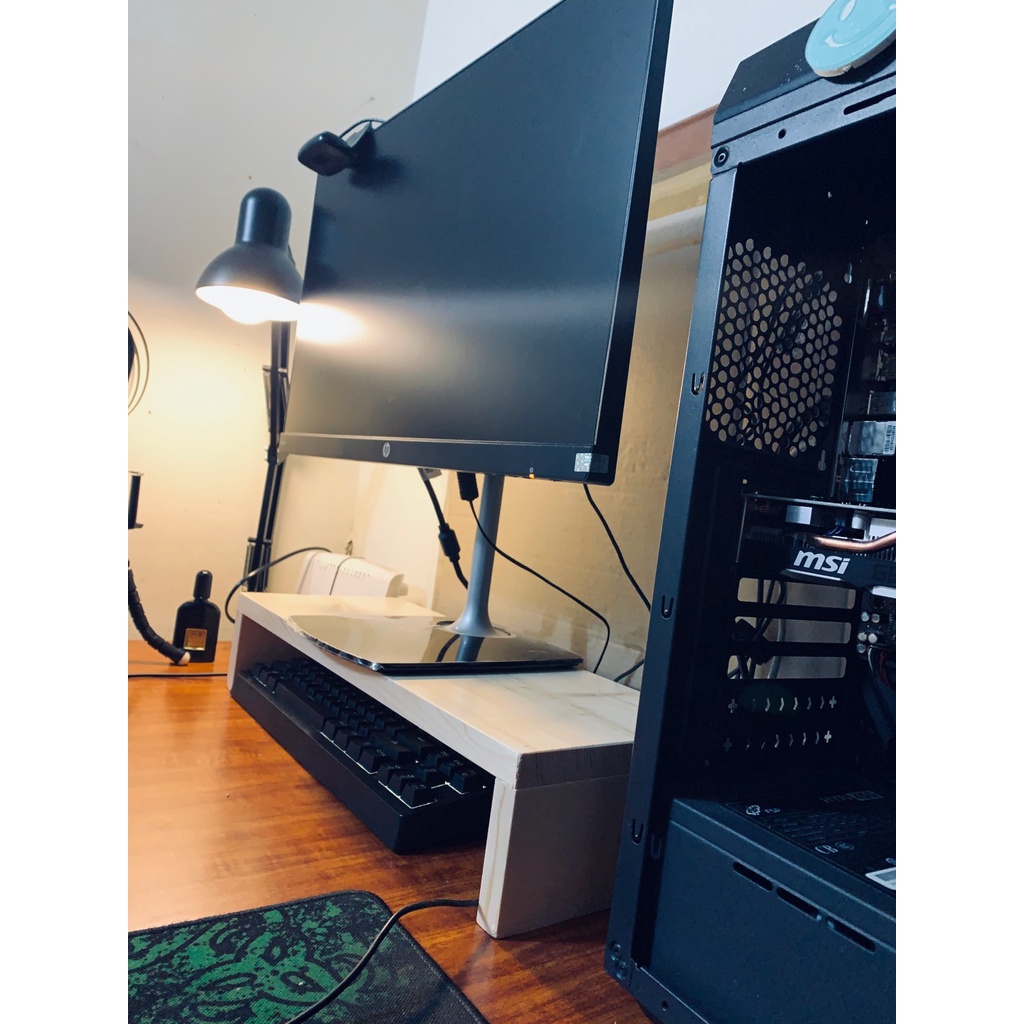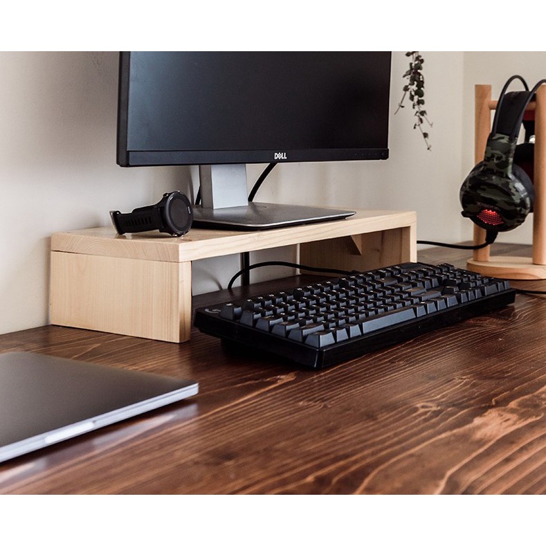 Kệ gỗ thông để màn hình của sẽ xoá bỏ mọi sự khó chịu của bạn trong vòng 30 giây. Kệ màn hình Monitor Stand giúp nâng độ cao của màn hình lên để khi làm việc bạn luôn ngồi thẳng theo đúng tỷ lệ an toàn cho cột sống; ngoài ra nó còn là nơi để cất các Keyboard và Mouse khi bạn cần không gian để viết, vẽ, thiết kế và làm việc khác,..