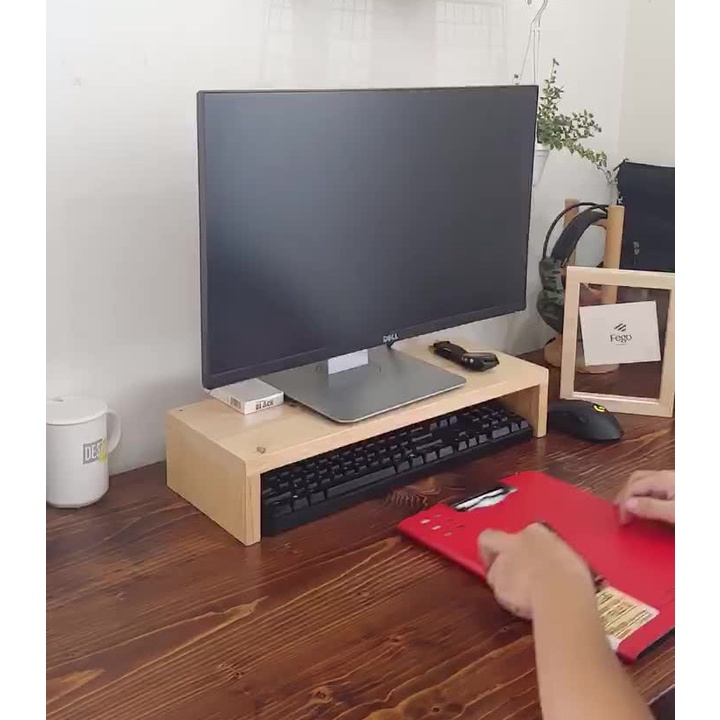 - Kệ gỗ màn hình, kệ để màn hình, bàn kê màn hình giúp bạn ngồi đúng tư thế làm việc; nơi cất gọn bàn phím và chuột giúp mở rộng không gian trên bàn làm việc hiệu quả hơn.