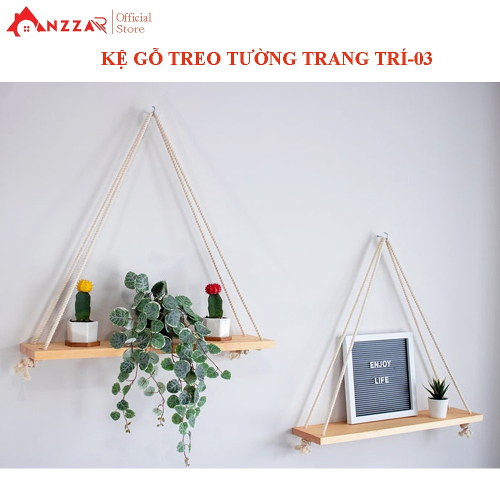 Nhà cửa & Đời sống > Nội thất > Kệ & Giá || Kệ gỗ treo tường dây thừng decor phòng ngủ, phòng khách trang trí nội thất Anzzar KG-03Còn hàng