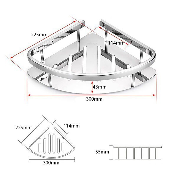 Chất liệu Inox 304 đẹp, bền, không gỉ• Tận dụng tối đa góc bếp hoặc phòng tắm
