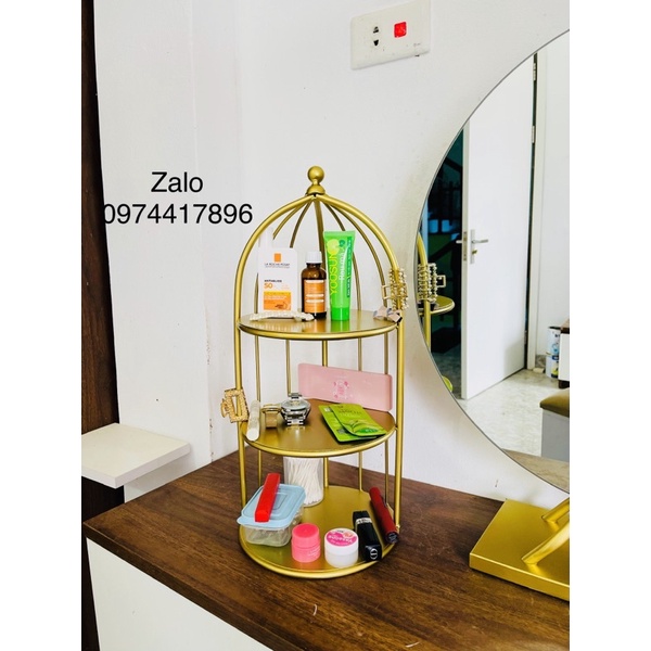 ‼️‼️‼️Kệ lồng chim 3 tầng tròn. Kệ để mỹ phẩm, son phấn. Kệ sang mịn ánh kim.