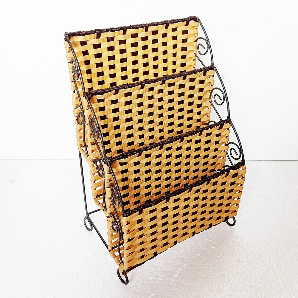 Chất liệu: khung sắt sơn tĩnh điện đan mây nhựaMàu sắc : nâu vàng.