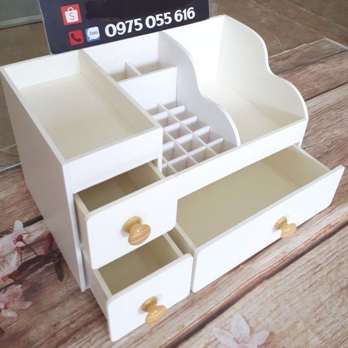 Nhà cửa & Đời sống > Trang trí nhà cửa > Khác || Kệ mỹ phẩm max trắng 35cm full ô son núm gỗ sángCòn hàng