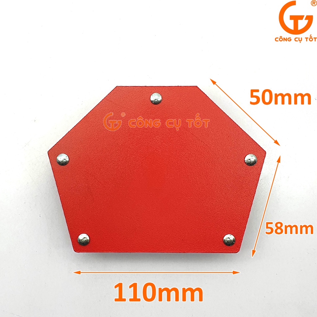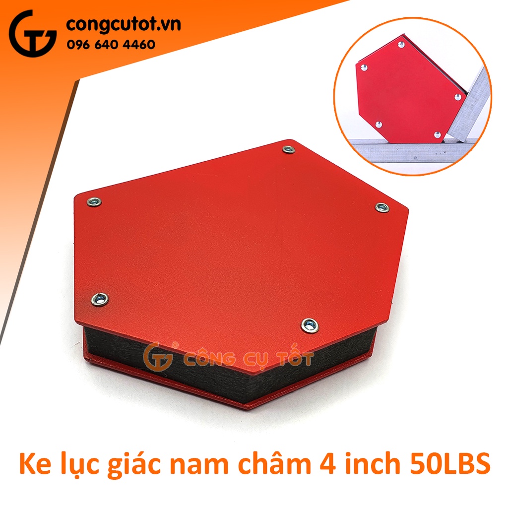 Ke góc lục giác nam châm 4 inch với lực hút 50LBS có khả năng giữ hút khối lượng. Ke nam châm có khả năng định hình chính xác các góc: 30°, 45°, 60°, 75°, 90°, 105°. Đây là dụng cụ không thể thiếu của những người thợ hàn, ứng dụng trong sản xuất cơ khí, hàn các góc của vì, kèo nhà, khung sắt, khung cửa, tay cầu thang sắt, bàn ghế sắt, khung biển quảng cáo,…Size: 4 inch - 50LBS.- 22kg