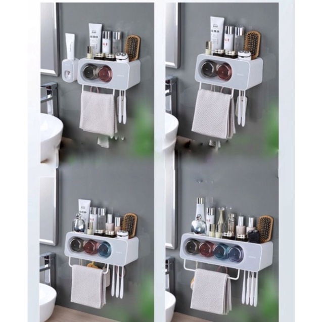 Nhà cửa & Đời sống > Đồ dùng phòng tắm > Kệ đựng bàn chải, kệ nhả kem đánh răng || Kệ nhà tắm, cắm chải kèm 4 cốc và thanh treo khăn ECOCO 2113 AMCòn hàng