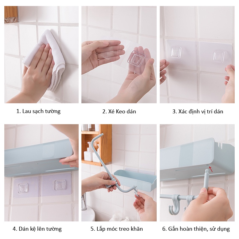 Hướng dẫn sử dụng Kệ nhựa dán tường nhà tắm, nhà bếp đựng đồ đa năng: