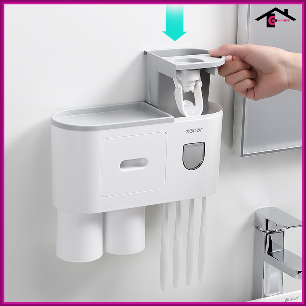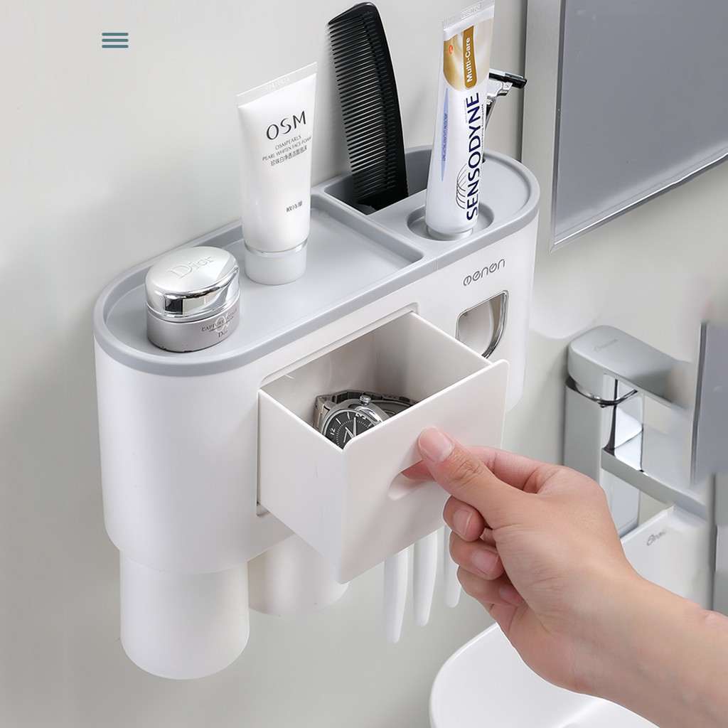 Nhà cửa & Đời sống > Đồ dùng phòng tắm > Kệ đựng bàn chải, kệ nhả kem đánh răng || Kệ nhà tắm thông minh Bộ nhả kem đánh răng tư động tặng kèm 2 cốc hút từ tínhCòn hàng