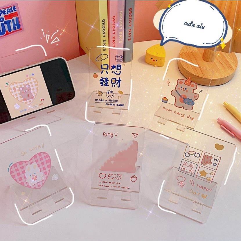 Điện Thoại & Phụ Kiện > Phụ kiện > Phụ kiện selfie > Giá đỡ || Kệ nhựa đỡ điện thoại Ipad dễ thương màu trong suốt mới lạ - quà tặng ý nghĩaCòn hàng