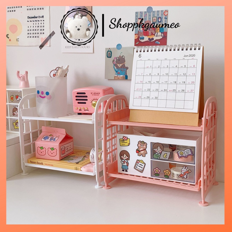 Chào mừng các bạn đã ghé qua Shop phụ kiện Gấu MèoMô tả chi tiết sản phẩm Kệ nhựa mini 2 tầng đựng đồ đa năng siêu xinh sẵn hàng: