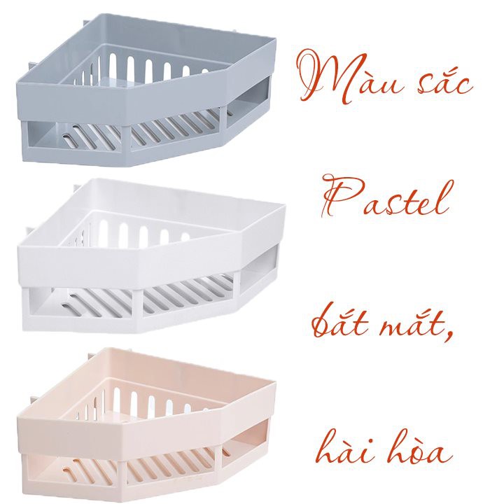 - Kệ góc tam giác dán tường thiết kế các khe hở dễ thoát nước, nhanh khô. Được thiết kế mịn các cạnh không làm tổn thương da. Kiểu dáng hình tam giác giúp tận dụng tiết kiệm không gian phòng tắm. Màu sắc bắt mắt, hài hòa với không gian nhà bạn.