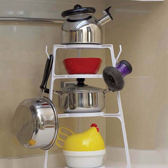 Thiết kế gồm 4 tầng với 3 móc treo cho bạn sắp xếp và bảo quản nồi niêu, xoong chảo,...giúp không gian bếp thêm gọn gàng, ngăn nắp.
