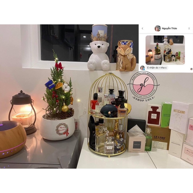 Kệ nước hoa, mỹ phẩm, skincare hình lồng chim cao cấp đế gương sang chảnh, khung gold cứng cáp